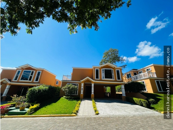 Cuenta con: 245mt2 de construcción, 2 niveles, sala, comedor, bar, cocina, jardín, 4 dormitorios, 3.5 baños, lavandería, dormitorio de servicio, sala familiar, patio y 4 parqueos.